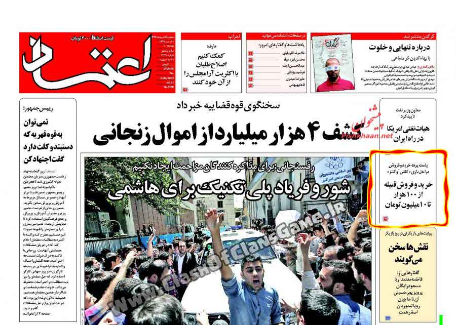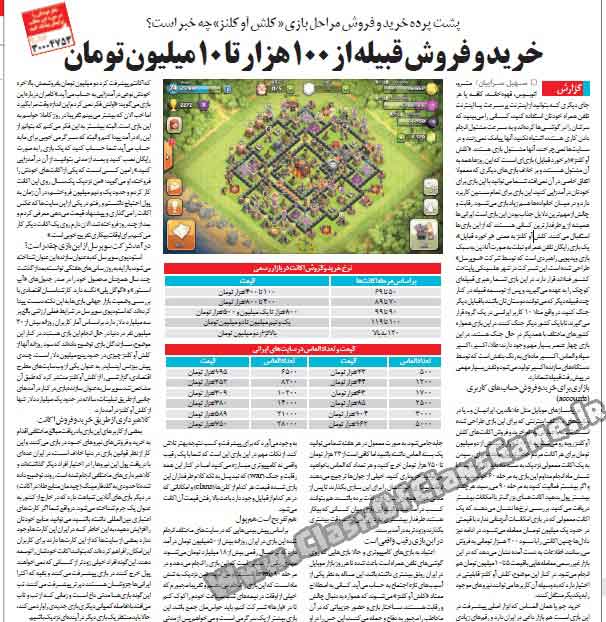 در این مطلب گزارشی برایتان پیدا کرده ایم از روزنامه اعتماد تاریخ " سه شنبه ۱۵ اردیبهشت ۱۳۹۴ " که در آن به بازی Clash Of Clans پرداخته است و همچنین خرید و فروش این بازی بین ایرانیان و تب بازی بین مردم ! برای خواندن این گزارش به ادامه مطلب مراجعه نمایید ...