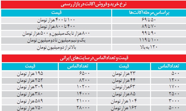 در پاساژ های موبایل مثل علاءالدین، ایرانیان و... یا در سایت های مختلف اینترنتی که برای این بازی طراحی شده است شما با عبارتی به نام خرید و فروش اکانت های کلش آوکلنز روبه رو می شوید. از ١٠٠ هزار تا بیش از دو میلیون تومان برای هر اکانت مردم حاضرند پول بدهند. برای رسیدن به یک اکانت معمولی نزدیک به سه ماه باید کار کرد، شما با شش ماه انجام مداوم این بازی به مرحله ٦٠ خواهید رسید و اگر بیشتر فعالیت کنید به مرحله ٩٠ می رسید. هر چقدر بیشتر پول بدهید اکانت های بزرگ تر با امکانات بیشتر دریافت می کنید. بررسی نرخ ها نشان می دهد که یک اکانت معمولی که در بازی امکانات آنچنانی ندارد با قیمتی در حدود یک میلیون تومان معامله می شود. در ادامه نیز دلال ها چنین اکانتی را با سود ٢٠٠ هزار تومانی به فروش می رسانند. اطلاعات به دست آمده نشان می دهد که در این بازار غیررسمی معامله هایی با قیمت ٥ تا ١٠ میلیون تومان هم انجام می شود. در کنار این موضوع، کلش آو کلنز قابلیتی در اختیاردارد که به وسیله آن کاربرها می توانند نیروهای موجود را به یکدیگر منتقل کنند.